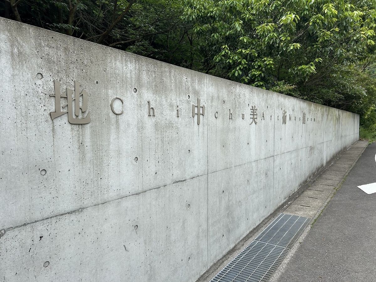 地中美術館はエントランスとカフェ以外は地中に埋められている。棚田状の立体式塩田跡の地下に建設されていた時は露出していたのだが、その後、美術館自体を山の稜線に埋没しているから地中美術館だろう。いくつかの開口部からしか光が届かないため、安藤忠雄の光の芸術を楽しめる。